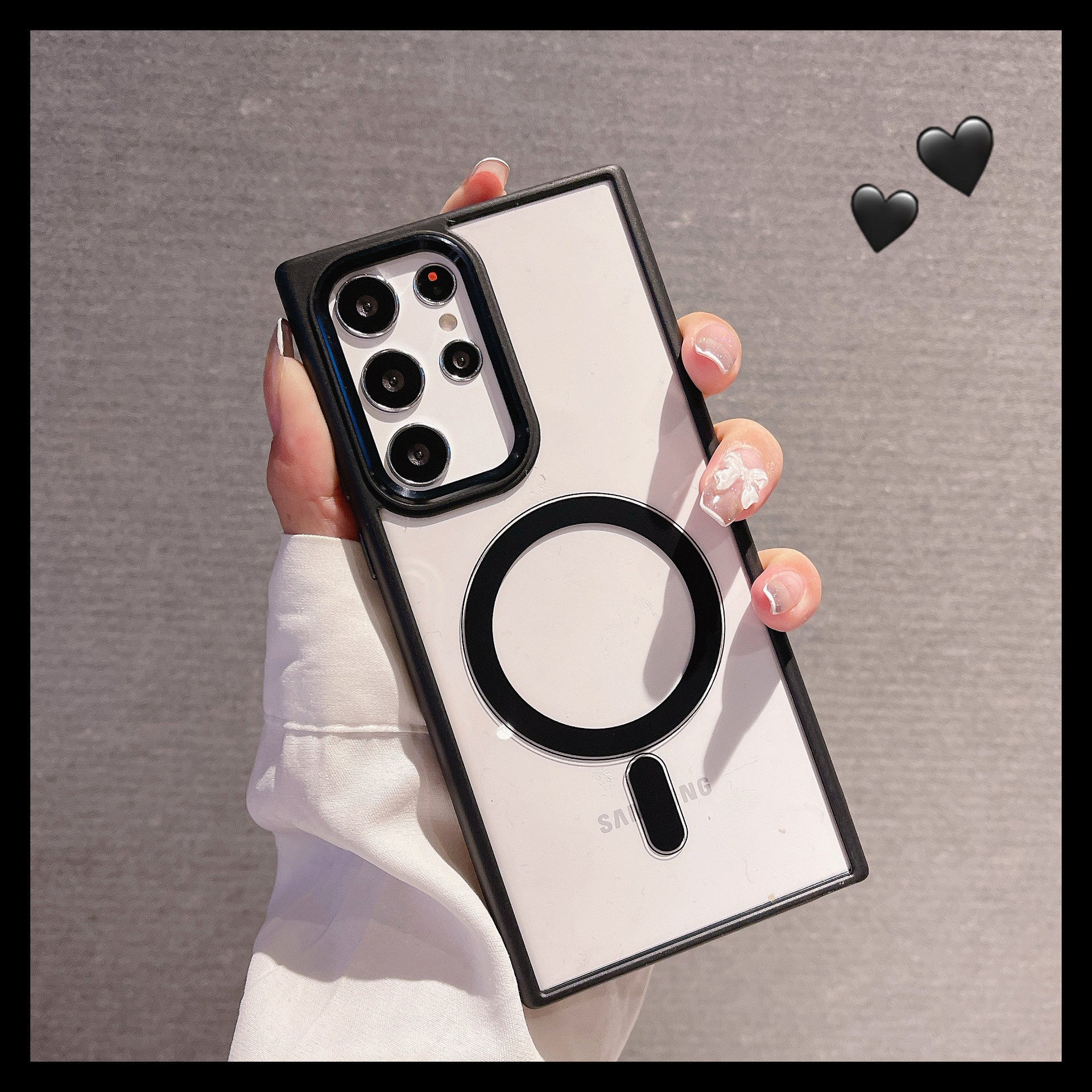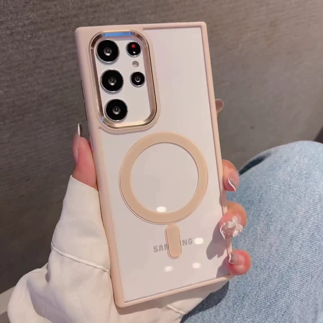 Suitable for Samsung S22Ultra mobile phone shell tpu soft edge metal ring magnetic transparent pc shell S22plus protective sleeve